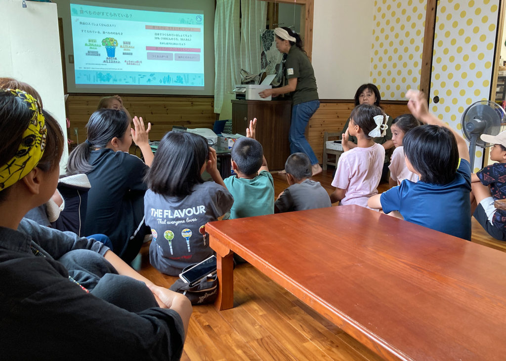 2025年7月26日(土曜)グリーンテラス菜の花(鹿児島県大島郡知名町大字徳時1318番地)において美食地政学講座in沖永良部島を実施し、18名の方に参加いただきました。三橋副PLからの環境についてやプロジェクトの取り組みなどのお話の後、繰り返し使えるまな板作製を体験いただきました。