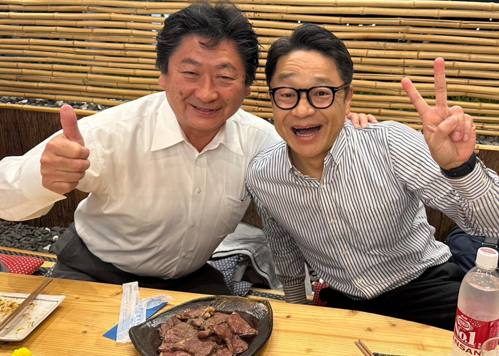 会場内では昨年に続き協賛金を募り、三重県立宇治山田商業高等学校の学生が考案した、伊勢志摩の自然資源を使った化粧水と石鹸を返礼品としてお渡ししました 。サミット後の意見交換会では志摩市長にもご参加いただき、プロジェクトの参画機関であるリファインホールディングス株式会社様からご提供いただいた、通常は捨てられる資源を活用し育てた縄文牛をご試食いただきました。
