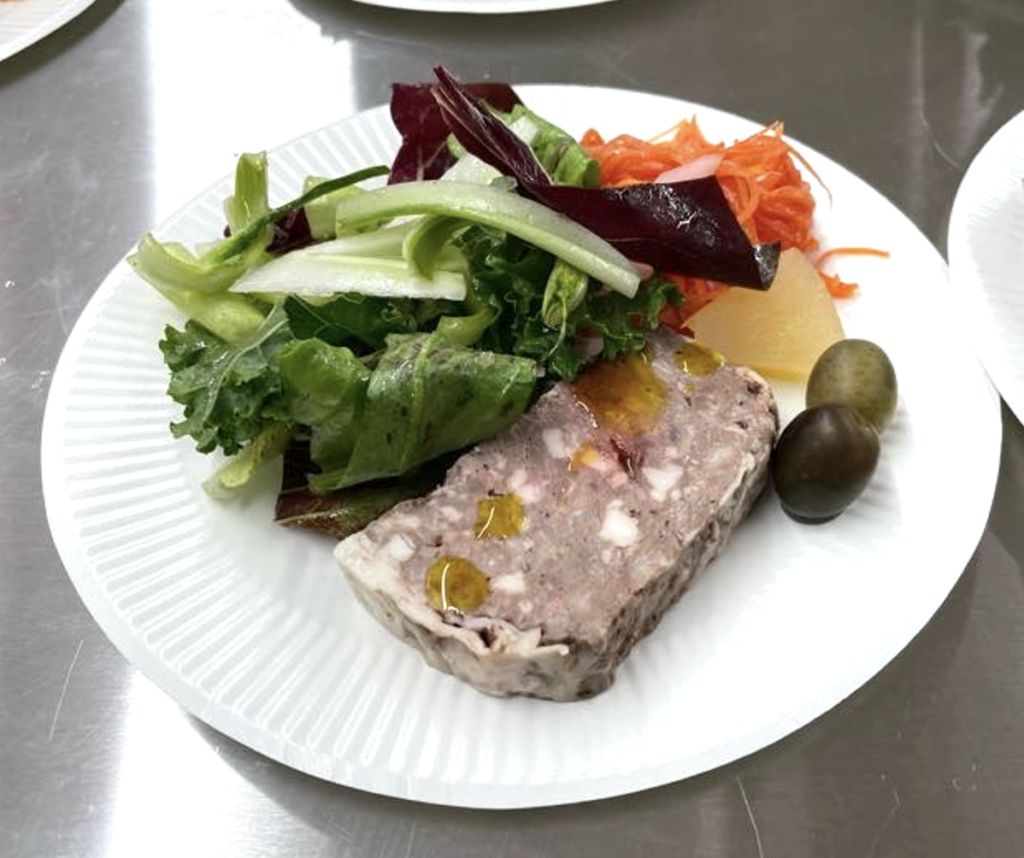 試食会では、瀬戸氏による 「網どり鴨とおだしまポークの田舎風パテ」 を中心とした一皿が提供されました。