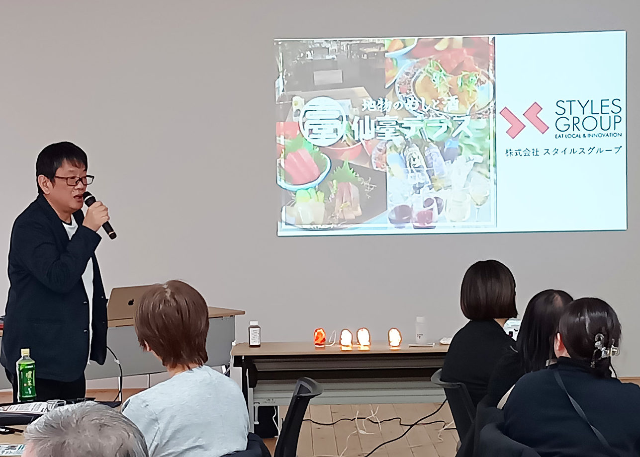 また、会場に参加されていた株式会社スタイルスグループ 佐々木浩史代表取締役からは、ホヤは冷凍することで水分が抜け、旨味が凝縮し食感も向上する特性があるため、家庭でも活用できる事例が紹介されました。串焼きや唐揚げなど居酒屋メニューとの相性も良く、実際に提供している店舗では大好評である事例が示されました。