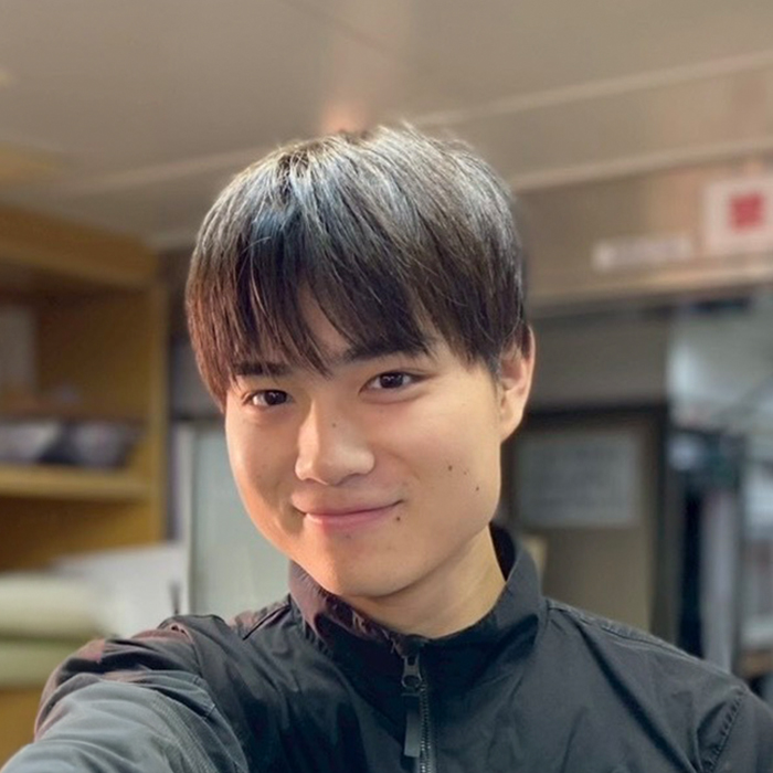 宮城県仙台第三高校出身。東北大学農学部卒業。水産資源生態学を専攻しており、学部4年次には高級魚ホシガレイの安定的な漁獲を目指した種苗放流の最適化について、主にDNA分析を用いた研究を行っていました。最近は、海洋生態系の捕食-被食関係について興味を持っており、沿岸部における環境変動が関係に与える影響を評価し、日本の漁業へ還元したいと考えています。